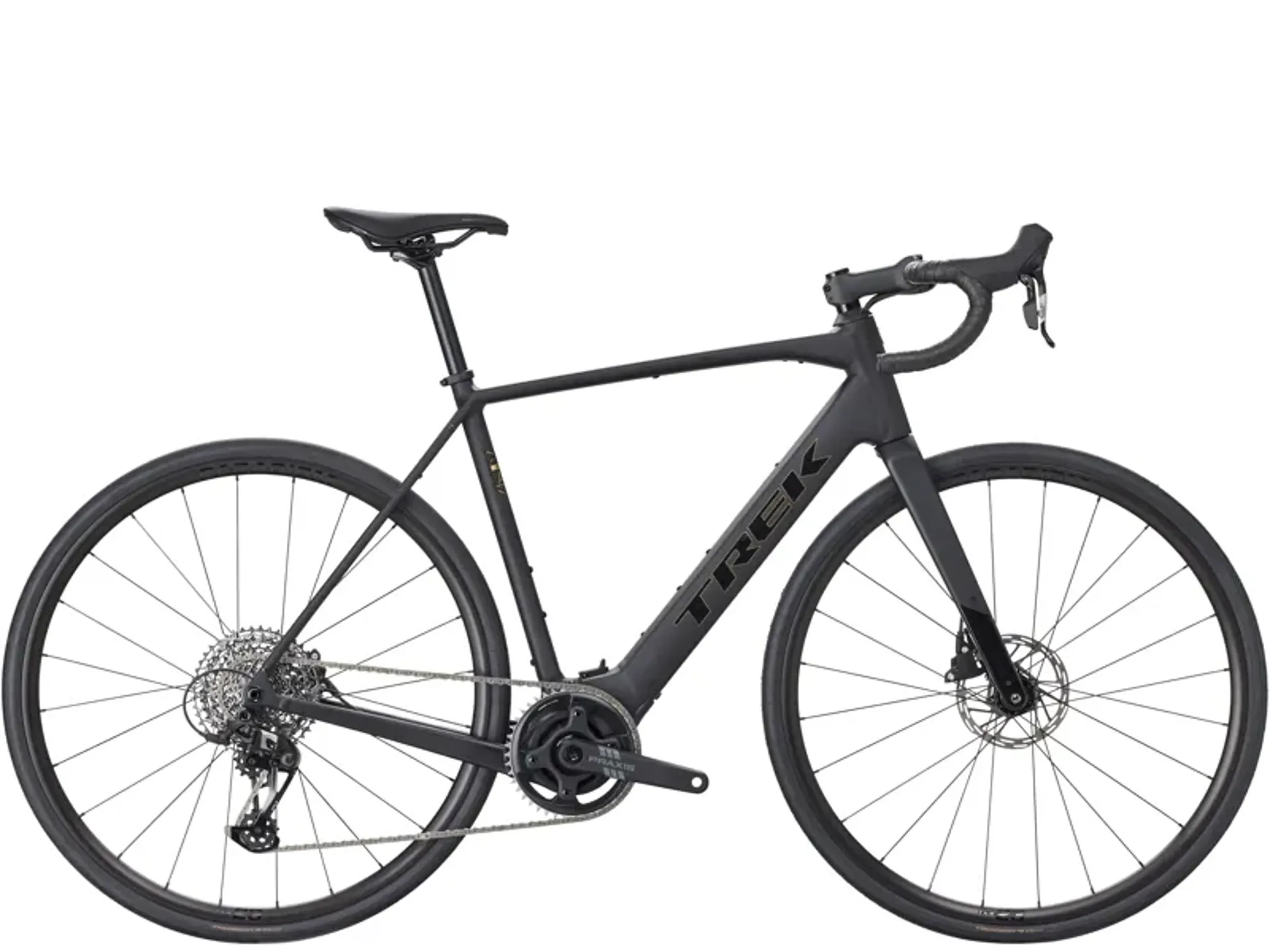 The domane+ alr 5 is an aluminium electric road bike with a smooth, quiet and natural-feeling boost. Its tq hpr60 motor gives you plenty of support for long rides and big climbs, and pairs with a SRAM apex 12-speed drivetrain for clean, consistent shifts.A light and mighty e-systemthe industry-leading tq hpr60 motor is ultra-compact, whisper-quiet and offers a natural-feeling assist up to 28 mph (25 km/h in europe) with three assist mode options.Double your distance with a range extenderexplore even further with an optional 160 wh range extender that fits in your bottle cage and gives you an extended total range of around 120 miles in eco mode.Comfortable road endurance geometrythe domane+ features a stable road endurance geometry that's a bit more upright to keep you fast and comfortable on all-day adventures.All-road tyre clearanceroom for up to 40 mm tyres (as measured) lets you venture from tarmac to light gravel in comfort and confidence.Lower-impact aluminiumthe domane+ alr features a durable and economical aluminium frame made with lower-emission aluminium.Pack it up, pack it inmounts for a triangle bag, rack, mudguards and water bottles let you carry everything you need for day-long adventures, fast commutes and anything in between